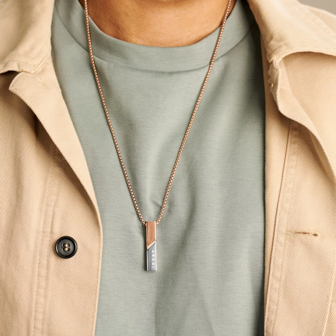 Arkai Collier Rico à Pendentif Couleur Or Rose Et Argent