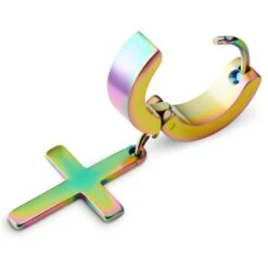 Lucleon Boucle D’oreille Créole Arc-en-ciel à Pendentif Croix