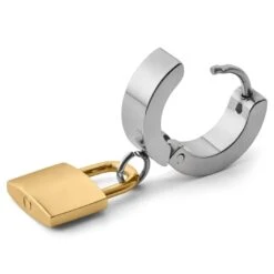 Otsu Boucle D’oreille Floyd Argenté Et Doré Avec Pendentif Cadenas
