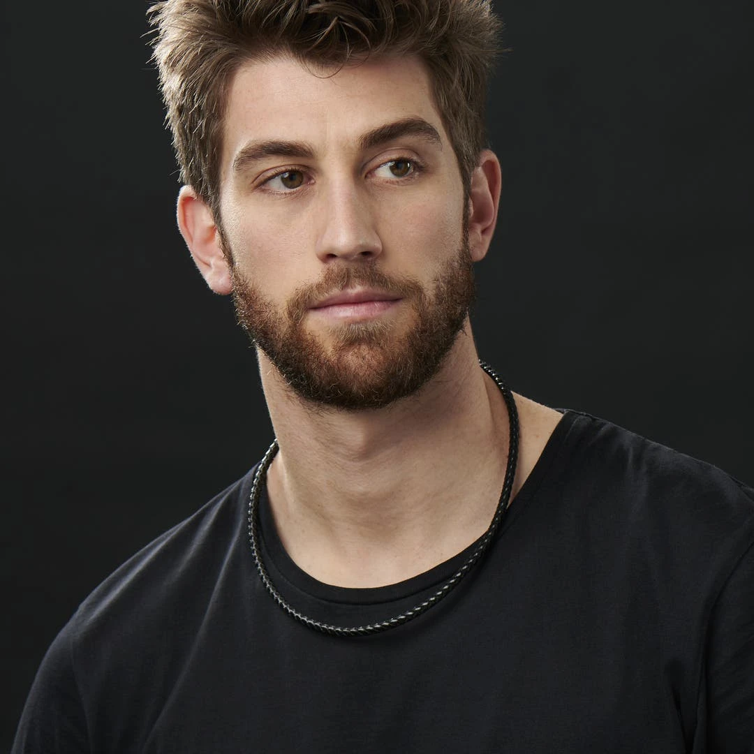 Collin Rowe Collier En Cuir Noir Tressé 5mm – Image 3