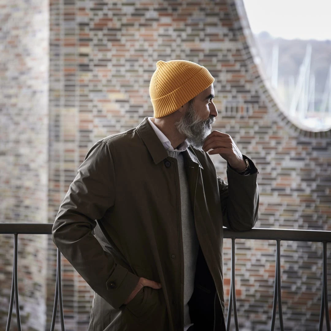 Fabriqué à partir de coton 100% biologique, ce bonnet léger et côtelé est équipé d’un rabat et affiche une couleur jaune éclatante.
