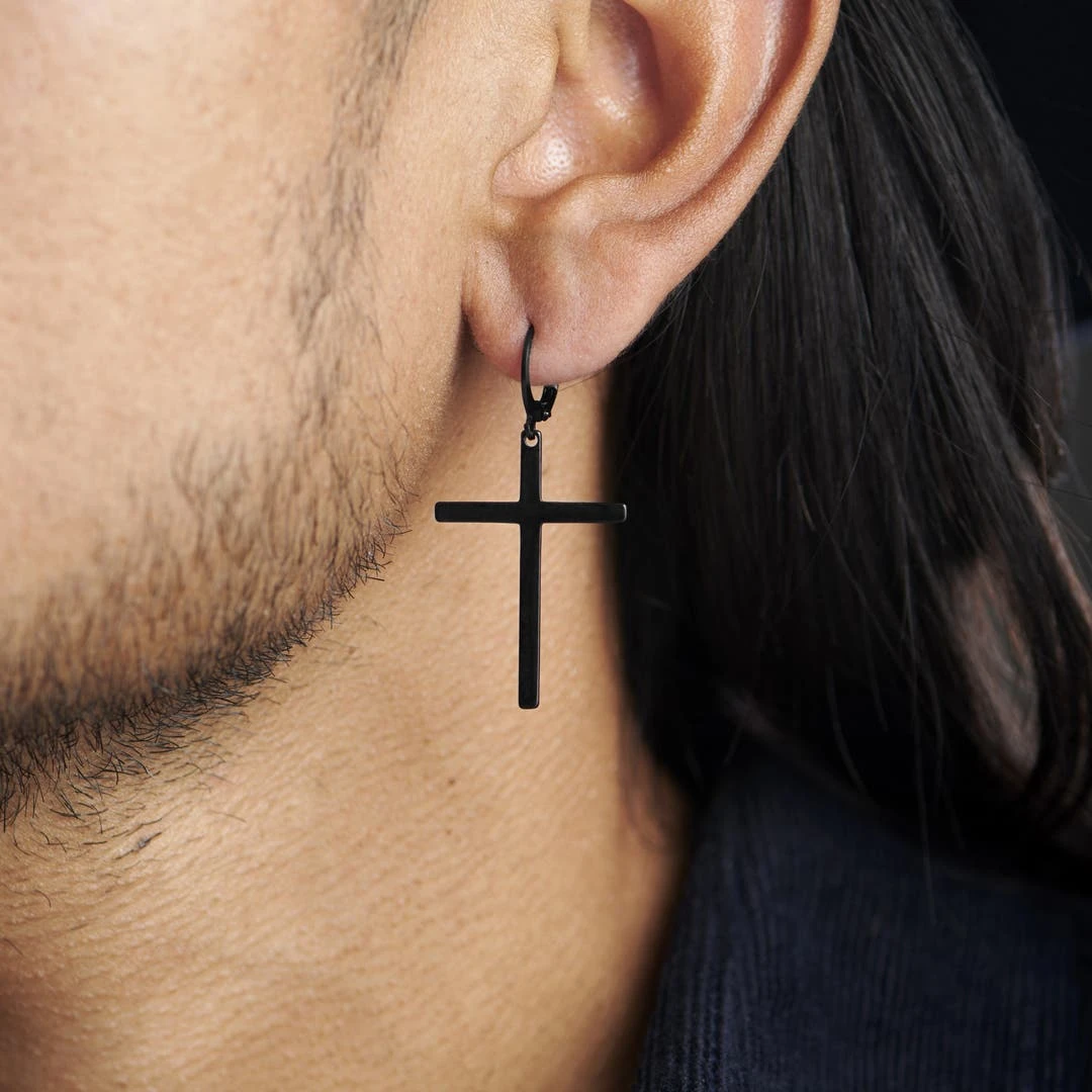Cette boucle d’oreille à pendentif croix est à la fois sobre et élégante.