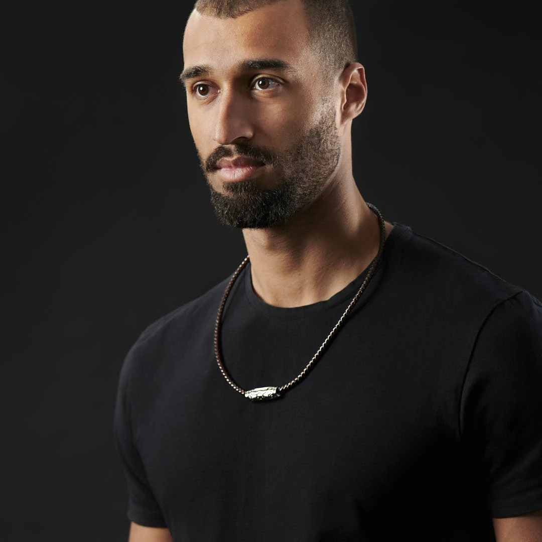La longueur parfaite pour un collier est un élément totalement subjectif. Le modèle sur le visuel mesure 187 cm et son tour de cou est de 37 cm. Pour la plupart des hommes, un collier de 50 cm est une dimension standard. Mais les hommes ne sont pas « standards ».
