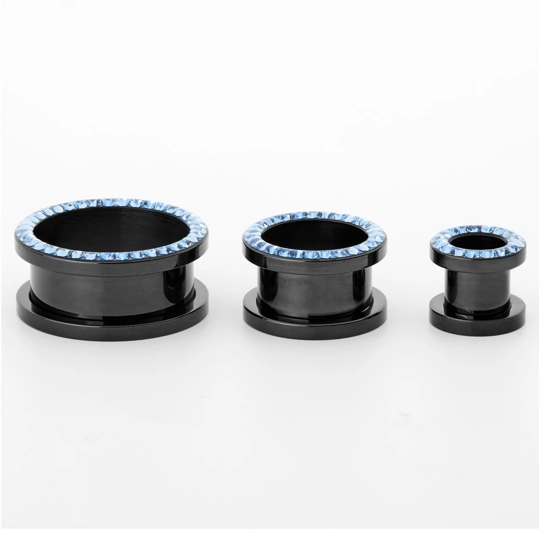 Ce tunnel à double rebord est fabriqué d’acier chirurgical noir avec un rebord de pierres en cristal bleu clair fixé avec de la résine. Ces pierres ne tombent pas!