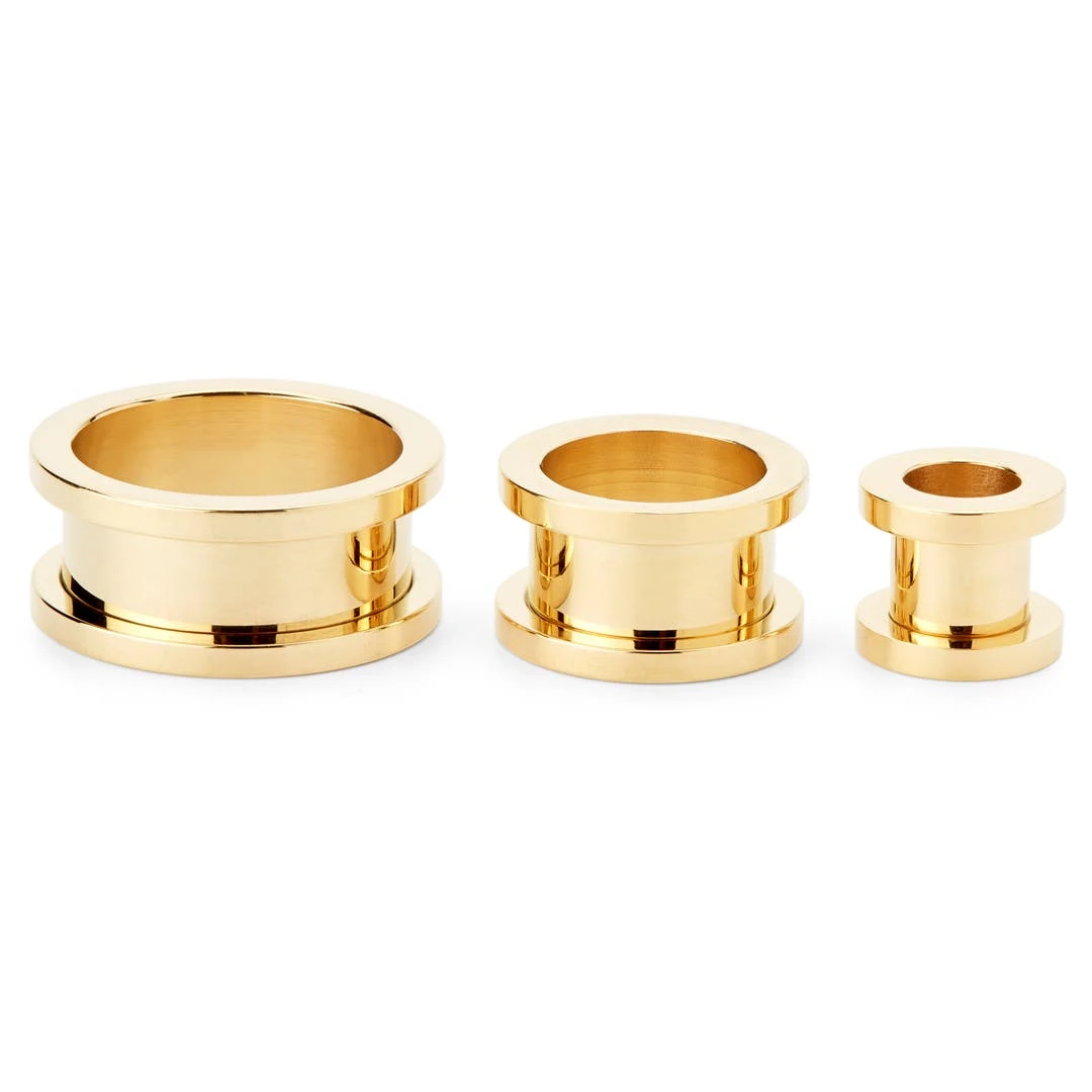 Attirez les regards vers le lobe de votre oreille à l’aide de ce tunnel écarteur en métal doré à la finition miroir. Vissable, il pourra être mis en place très facilement.