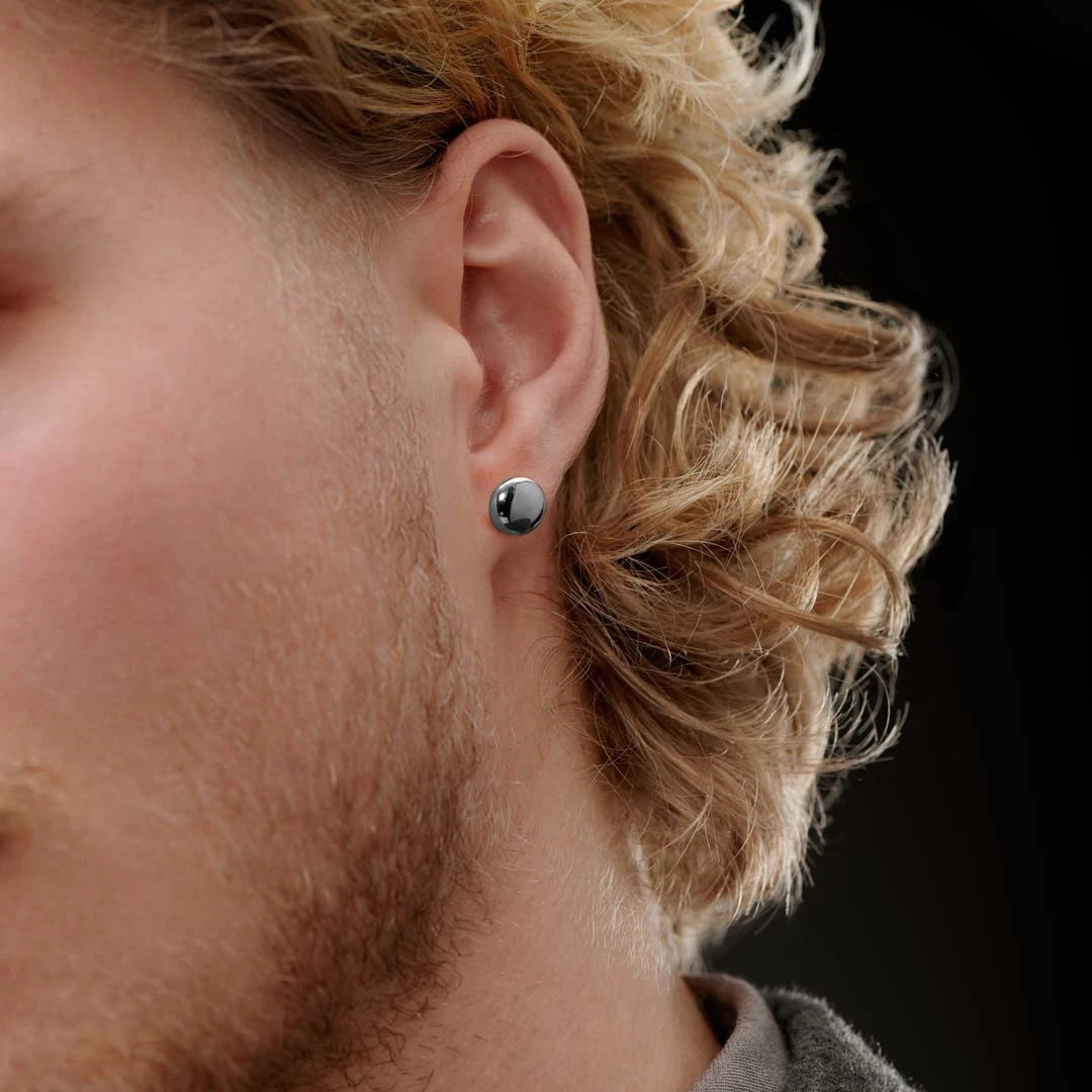 Toutes les éléments de cette boucle d’oreille au design classique – y compris son fermoir à pression – sont en acier inoxydable 316L poli.