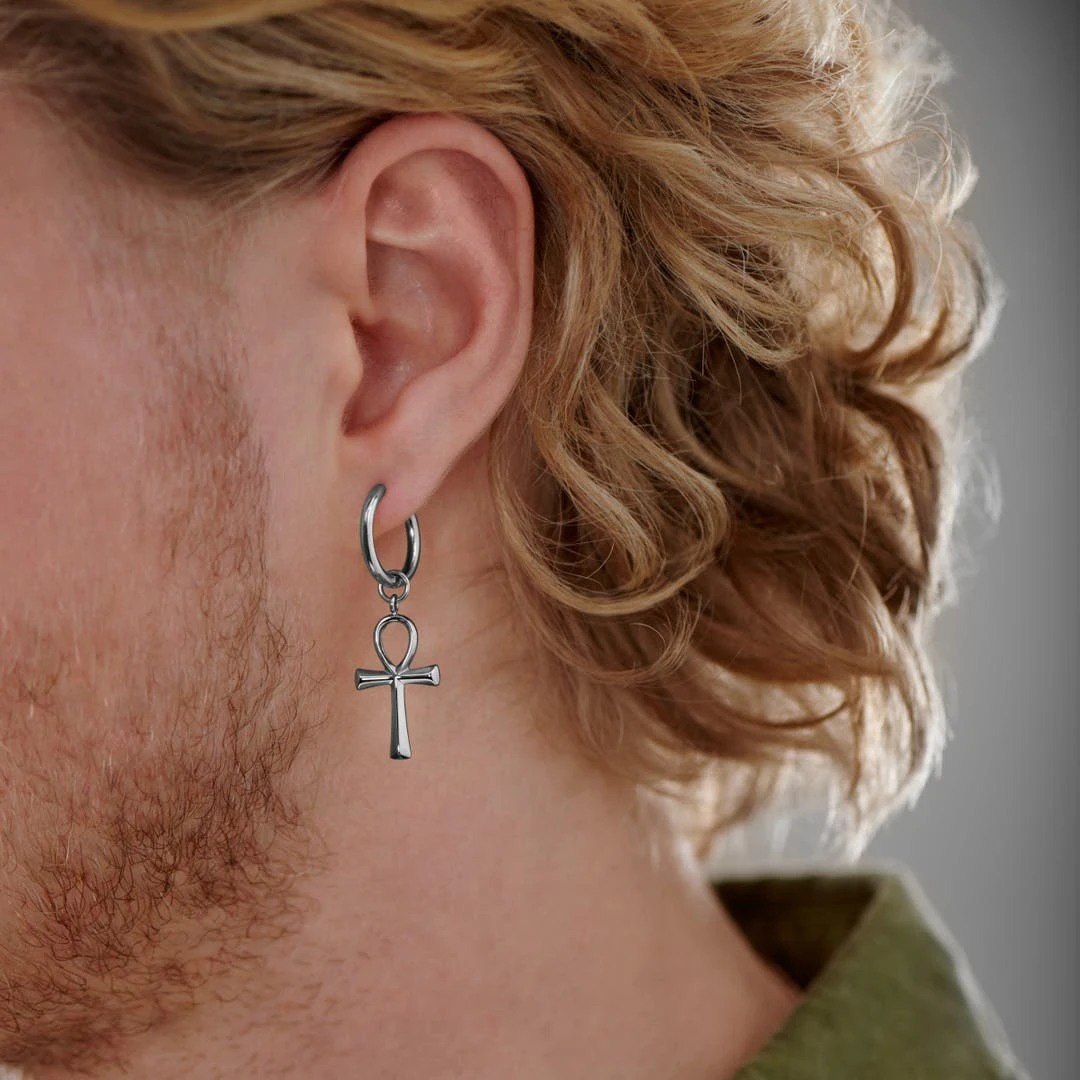 Fabriqué en acier inoxydable de qualité chirurgicale, ce pendentif ankh est amovible et pourra être facilement assorti à d’autres pendentifs et/ou installé sur d’autres boucles d’oreille.