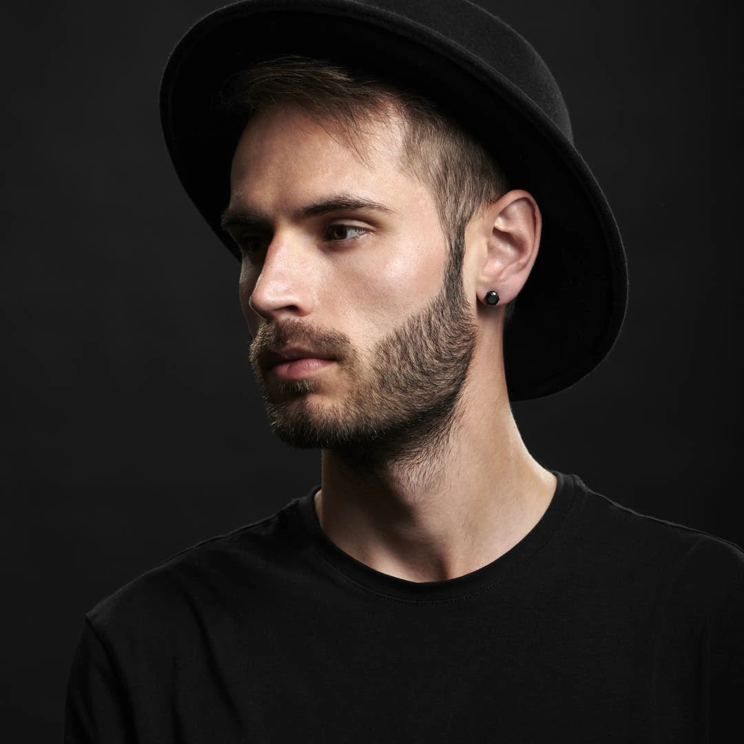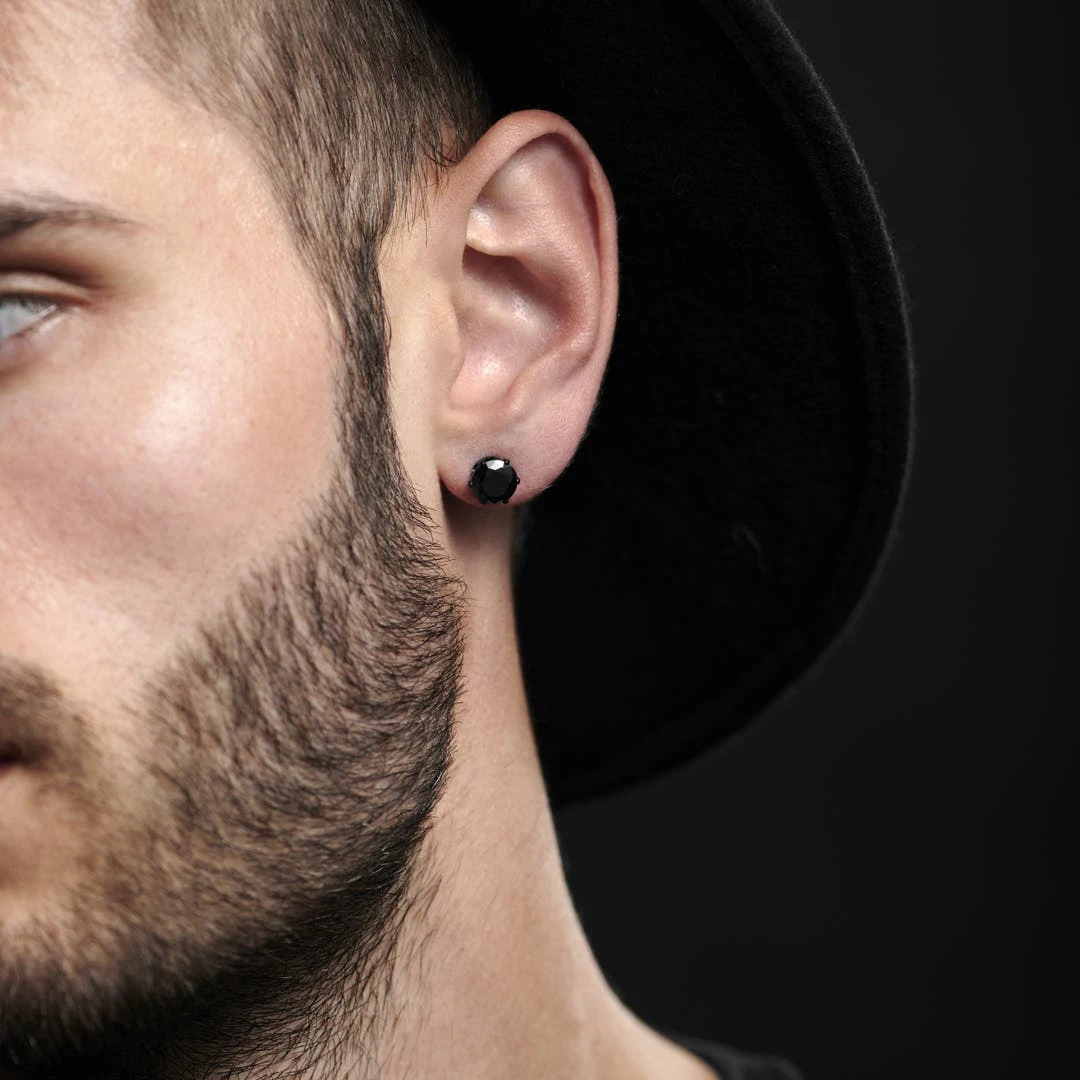Une boucle d’oreille en acier inox noir serti de zircones noires. Un bijou moderne et audacieux.