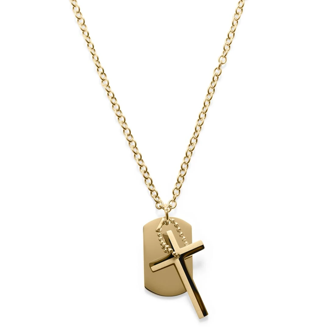Lucleon Collier En Acier Doré à Pendentif Croix Et Plaque Militaire -Bijouterie Soldes Boutique 1 1.3e87d5ac2e07d6f19d10a5b1eedc45dc