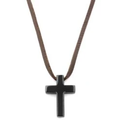 Lucleon Collier "Le Fils" à Croix Chrétienne En Métal Noir Et Cordon De Cuir -Bijouterie Soldes Boutique 8 2 293