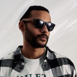Waykins Lunettes De Soleil Rétro Noires à Verres Polarisés Bleus Et Branches En Bois