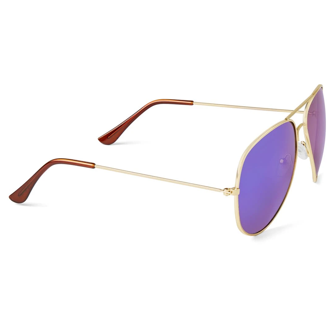 Ces lunettes de soleil Aviateur au design classique sont serties de verres irisés foncés offrent une protection complète contre les rayons UVA / UVB.