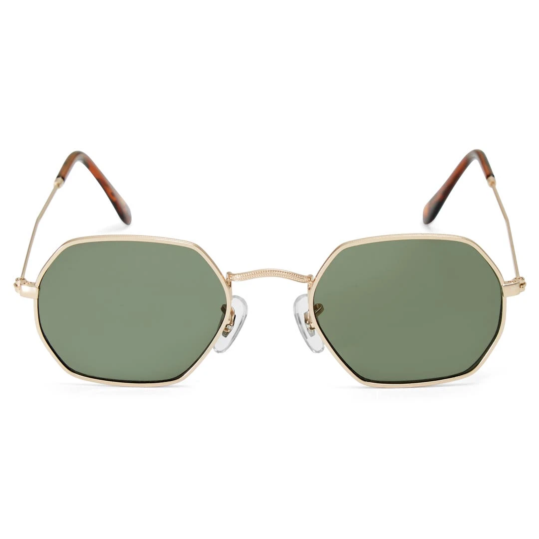 Ces lunettes de soleil sont une déclinaison moderne d’un design classique. Elles sont équipées de verres angulaires gris et de montures dorées. Elles vous offriront une protection intégrale contre les UVA et UVB.
