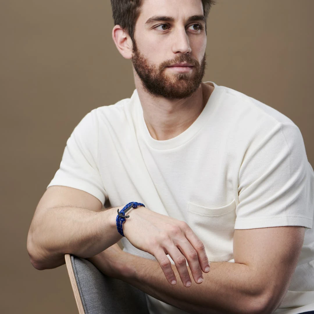 • Tailor Toki Bracelet L'ancre Noire à Cordon Noir Et Bleu -Bijouterie Soldes Boutique 2 265